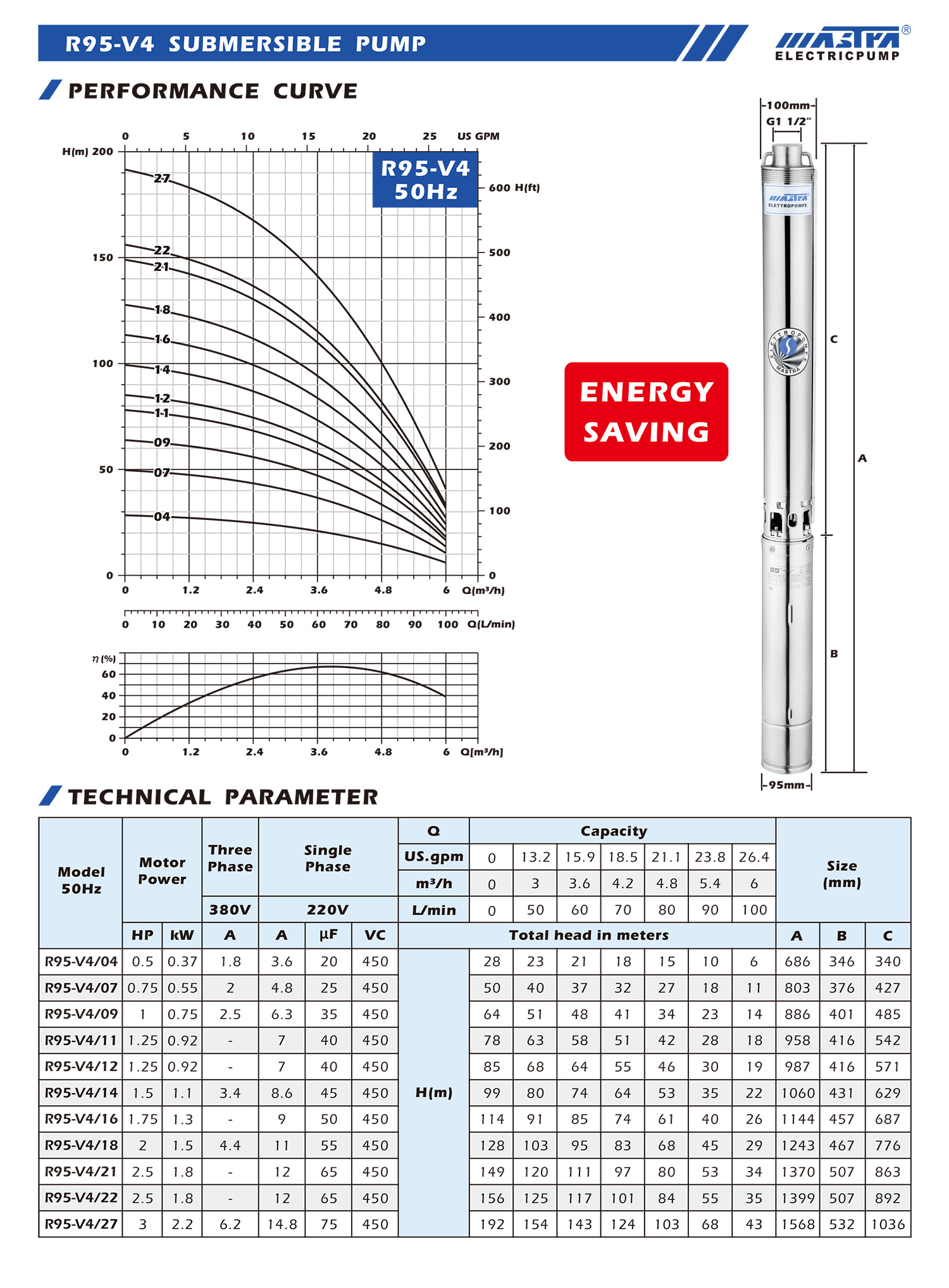 R95-V4 4" stainless steel submersible pump