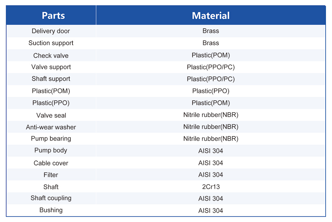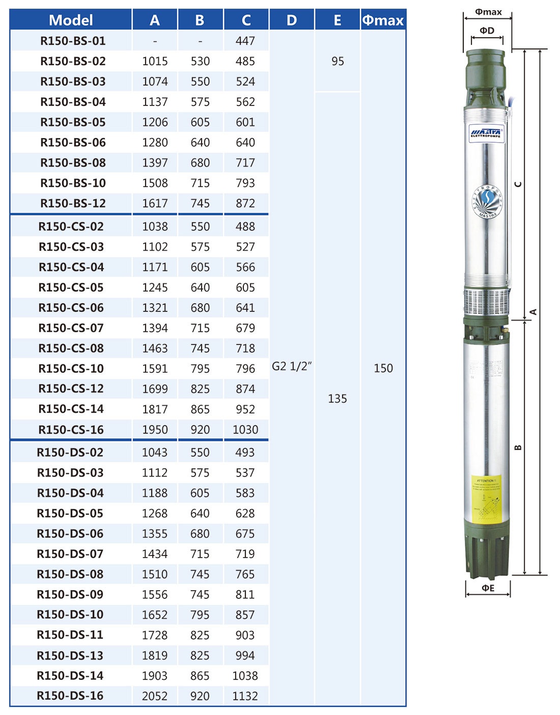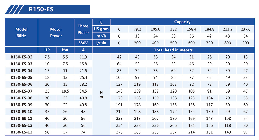 The main characteristic of the electric pumps with semi-axial impellers is to give high deliveries with low heads. The impellers and the diffusers are in grey cast iron, (on request, the impellers can be supplied in bronze), whereas the bearings are in ceramic/rubber lubricated by the water circulation. Check valve is incorporated in the delivery body with threaded outlet (on request , it can be supplied flanged). The coupling Pump-motor is according to NEMA regulations.