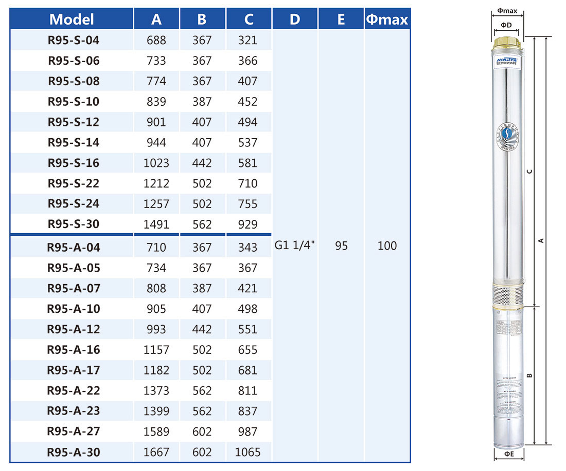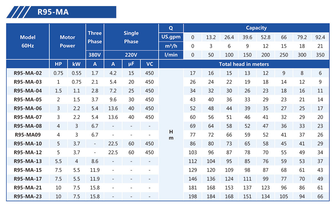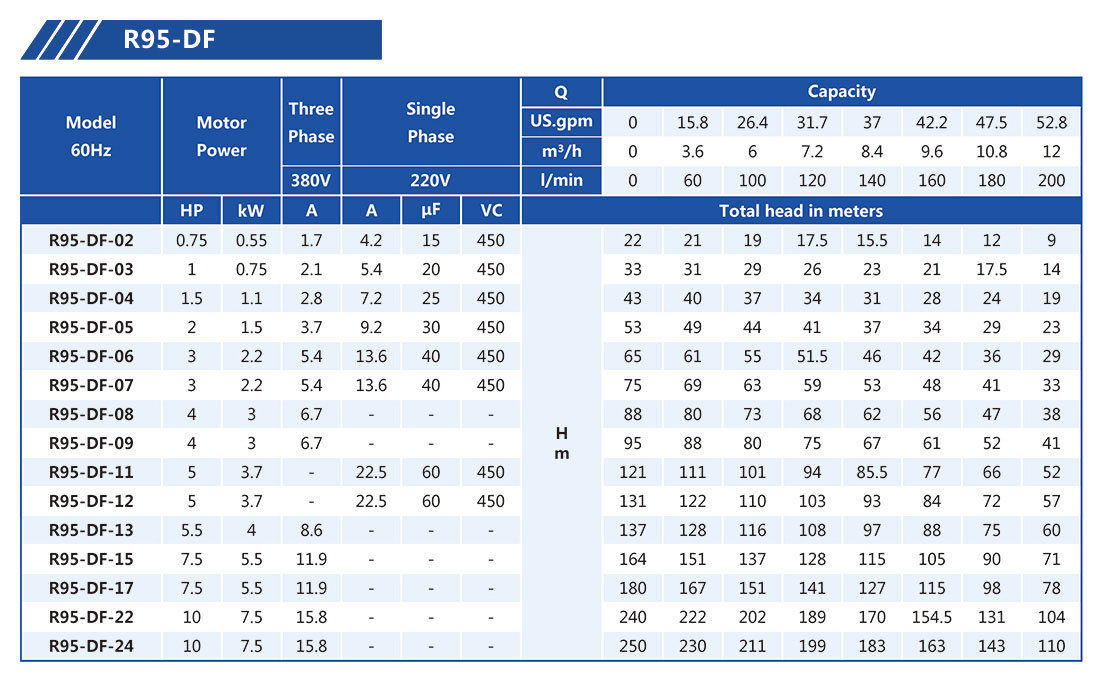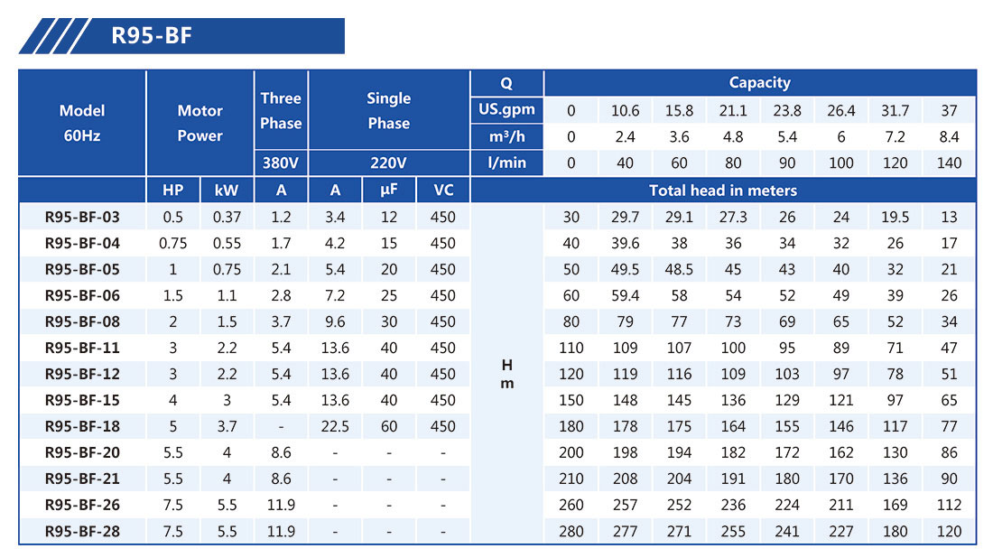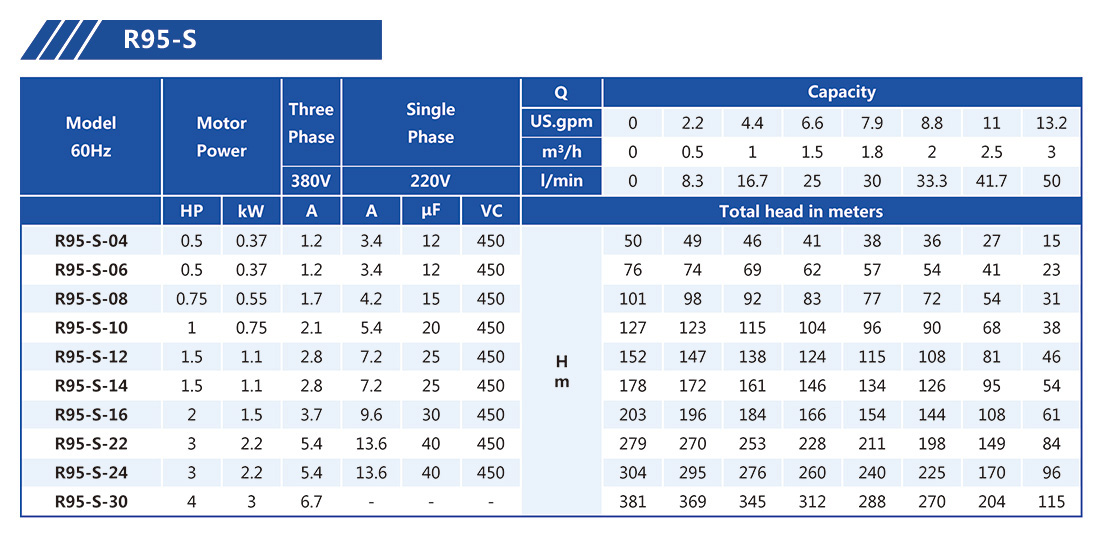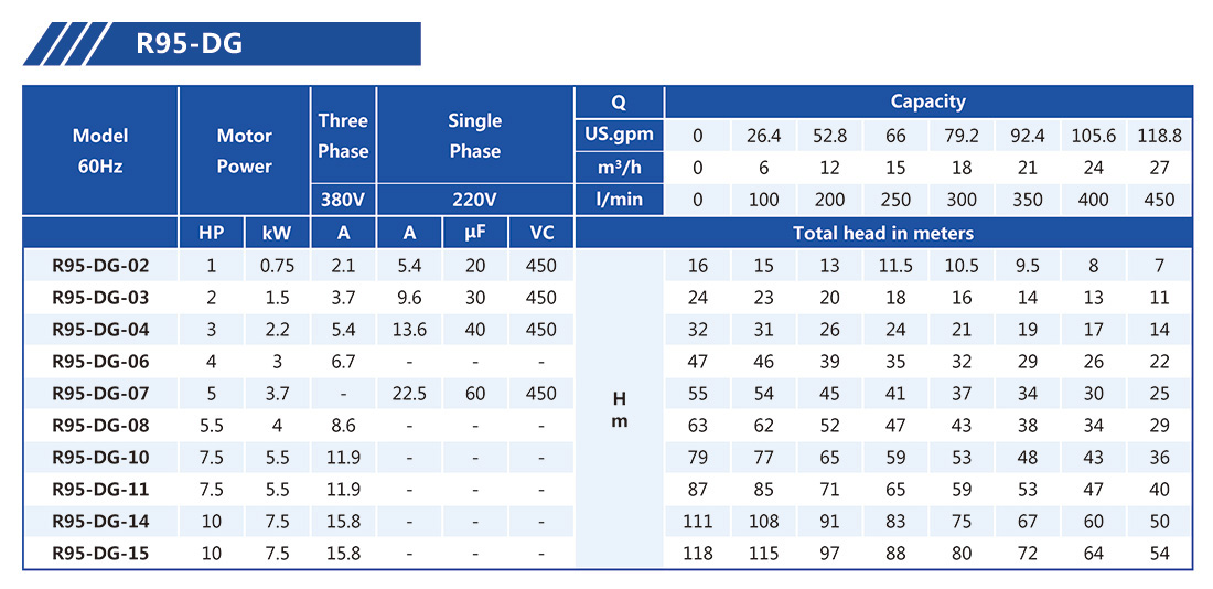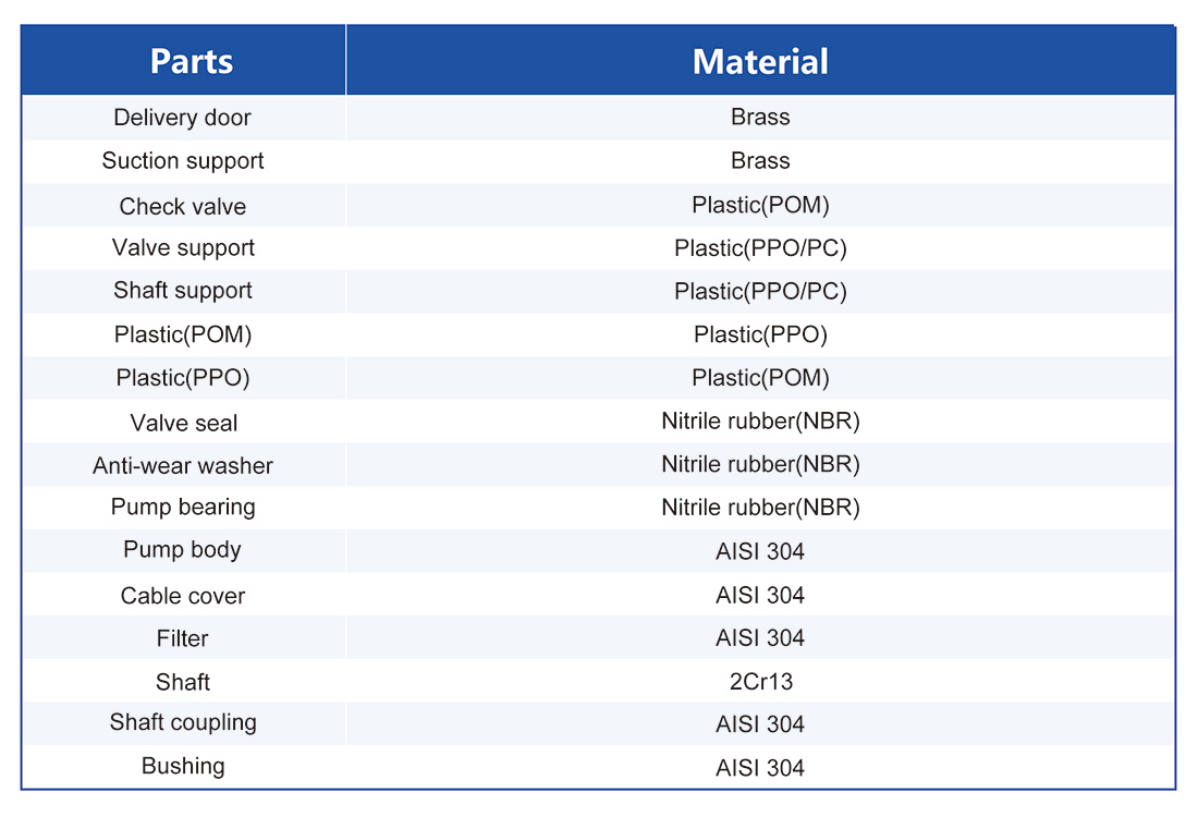 Electric submersible pumps are with radial or semi-axial imperllers.The impellers and the diffusers are in plastic material(noryl),whereas the bearings are in ceramic/rubber lubricated by the water circulation.Check valve is incorporated in the delivery body with threaded outlet.The coupling Pump-motor is according to NEMA regulations.