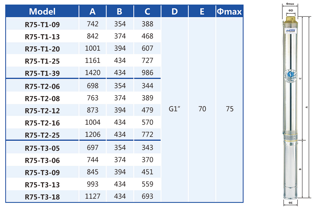 3" motor: about the technical characteristic, please see the catalogue of submersible motor