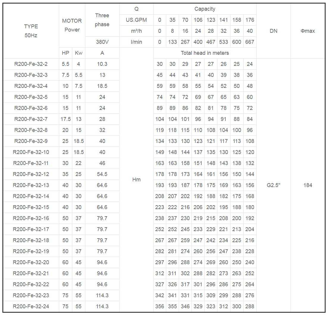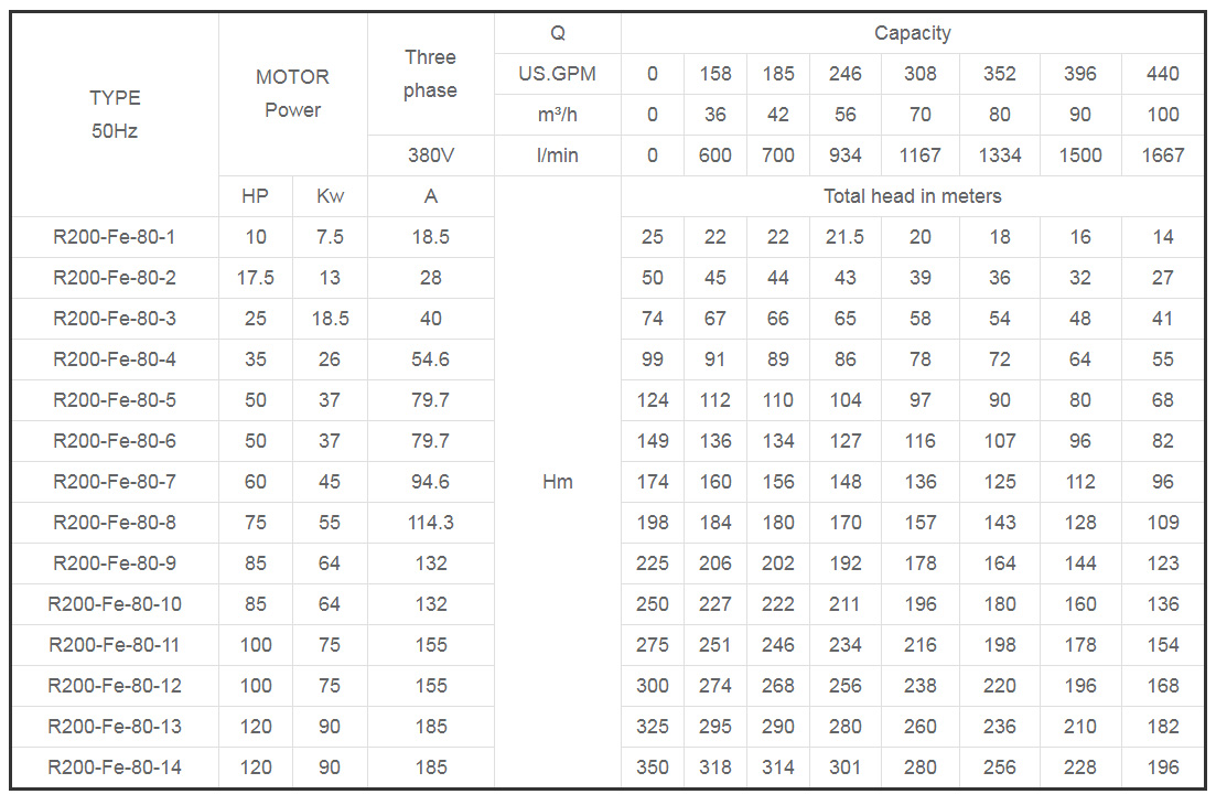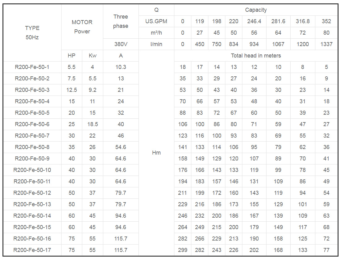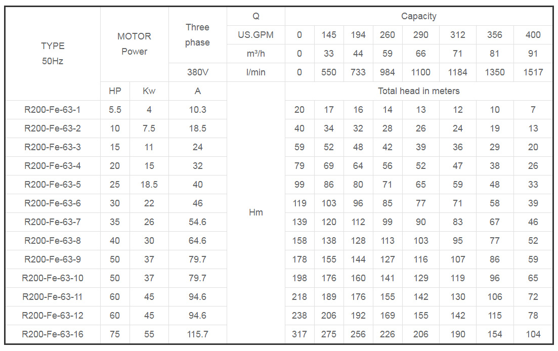 The main characteristic of the electric pumps with semi-axial impellers is to give high deliveries with low heads. The impellers and the diffusers are in grey cast iron, (on request, the impellers can be supplied in bronze), whereas the bearings are in ceramic/rubber lubricated by the water circulation. Check valve is incorporated in the delivery body with threaded outlet (on request , it can be supplied flanged). The coupling Pump-motor is according to NEMA regulations.
