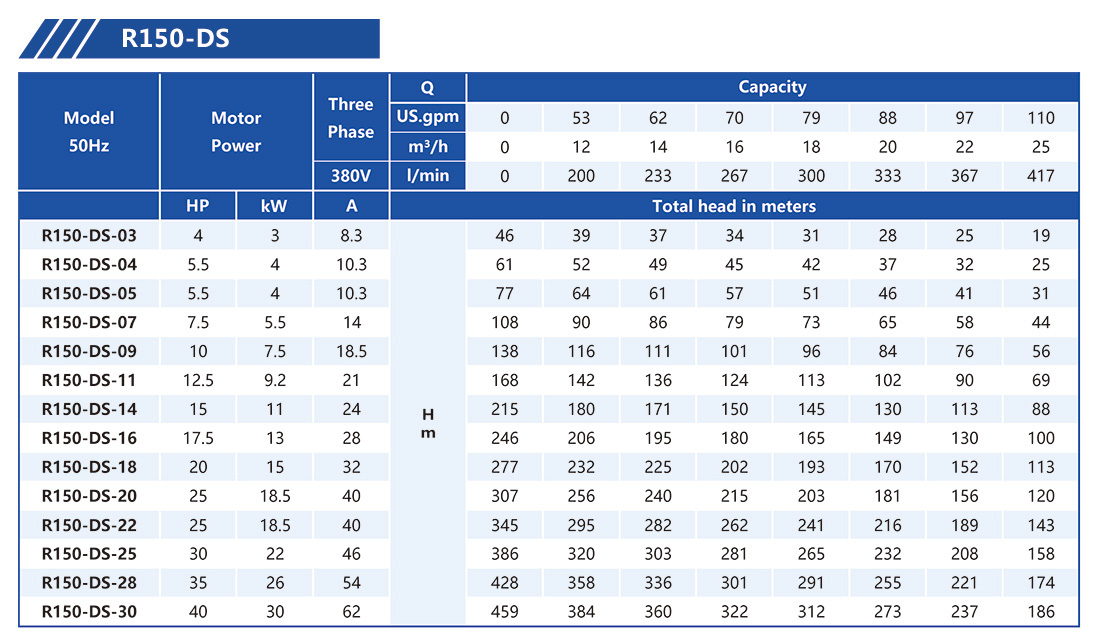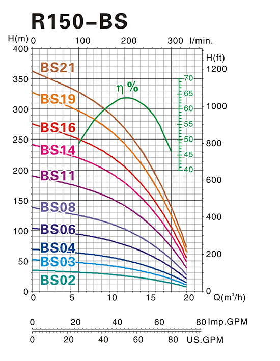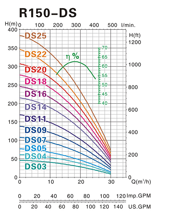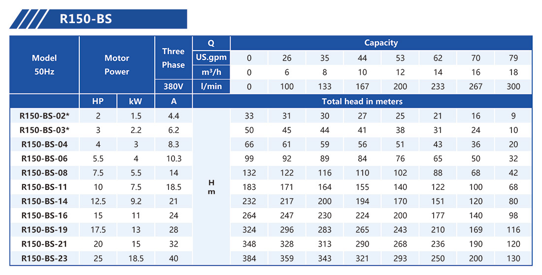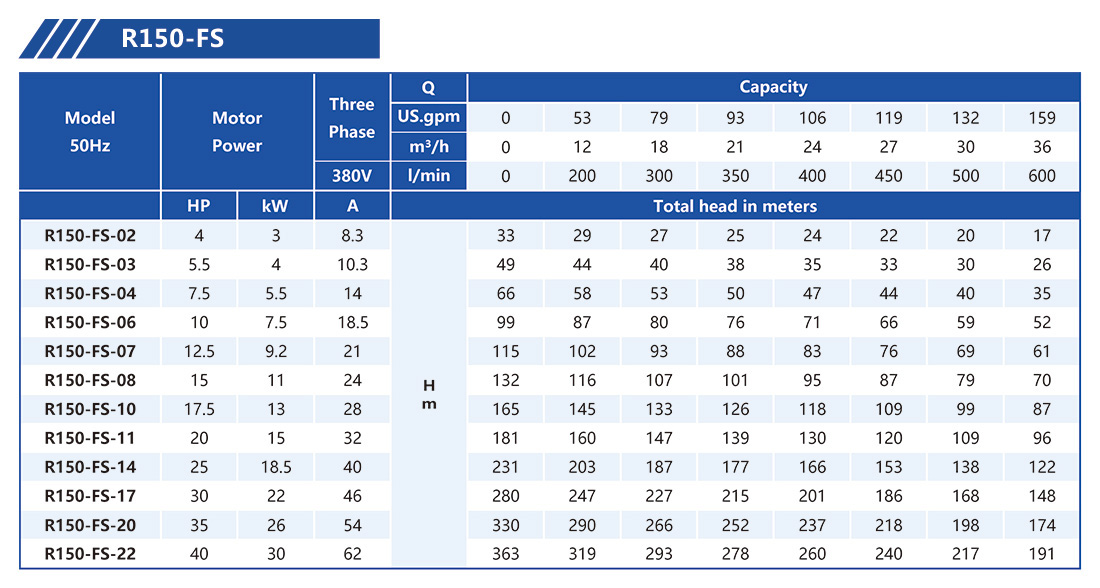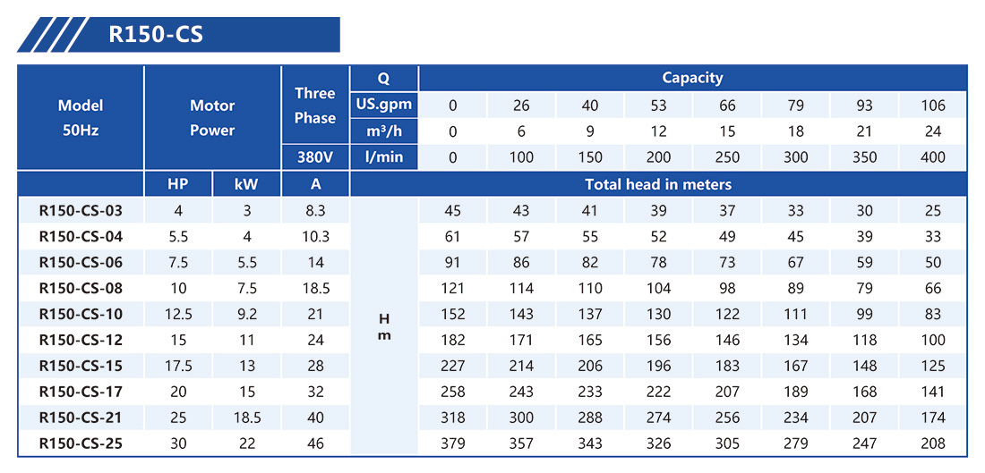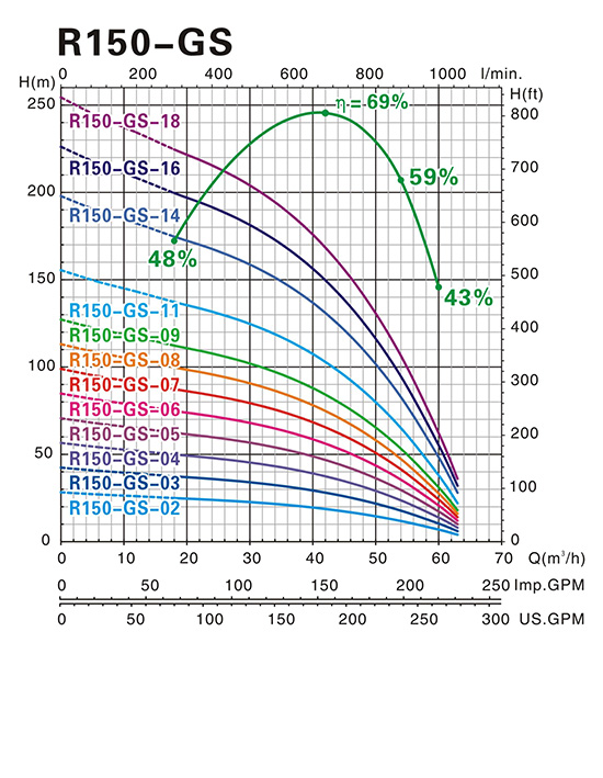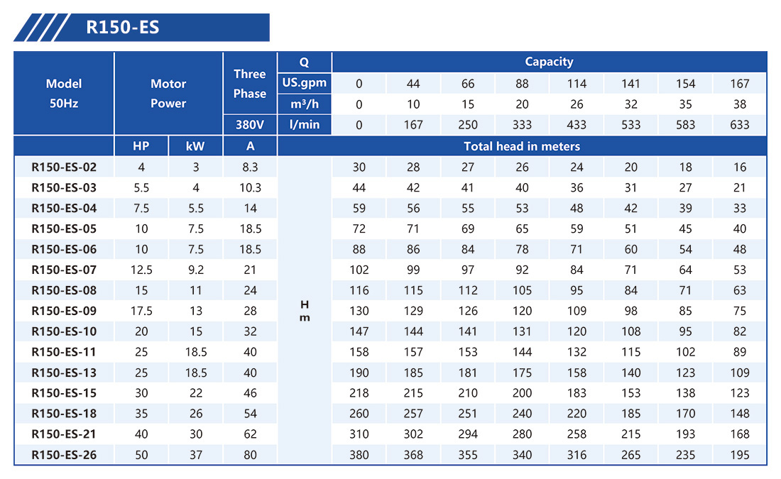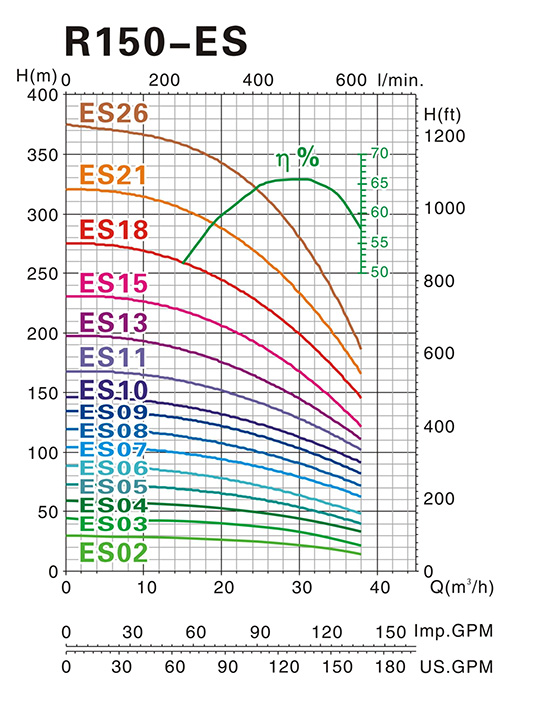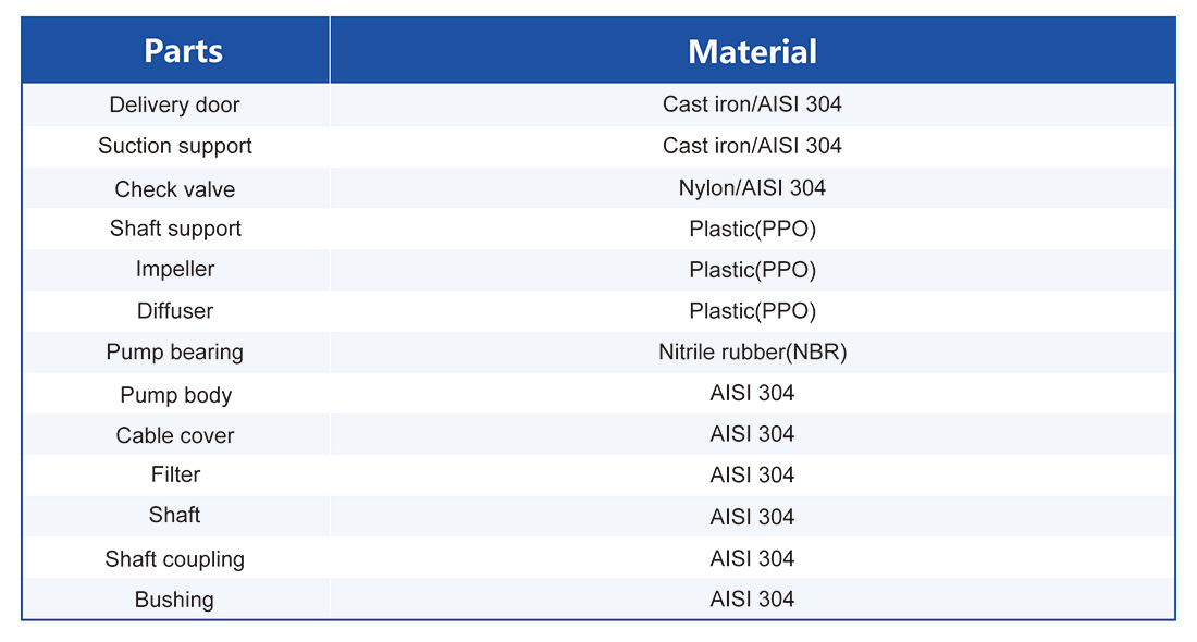 The main characteristic of the electric pumps with semi-axial impellers is to give high deliveries with low heads. The impellers and the diffusers are in grey cast iron, (on request, the impellers can be supplied in bronze), whereas the bearings are in ceramic/rubber lubricated by the water circulation. Check valve is incorporated in the delivery body with threaded outlet (on request , it can be supplied flanged). The coupling Pump-motor is according to NEMA regulations.