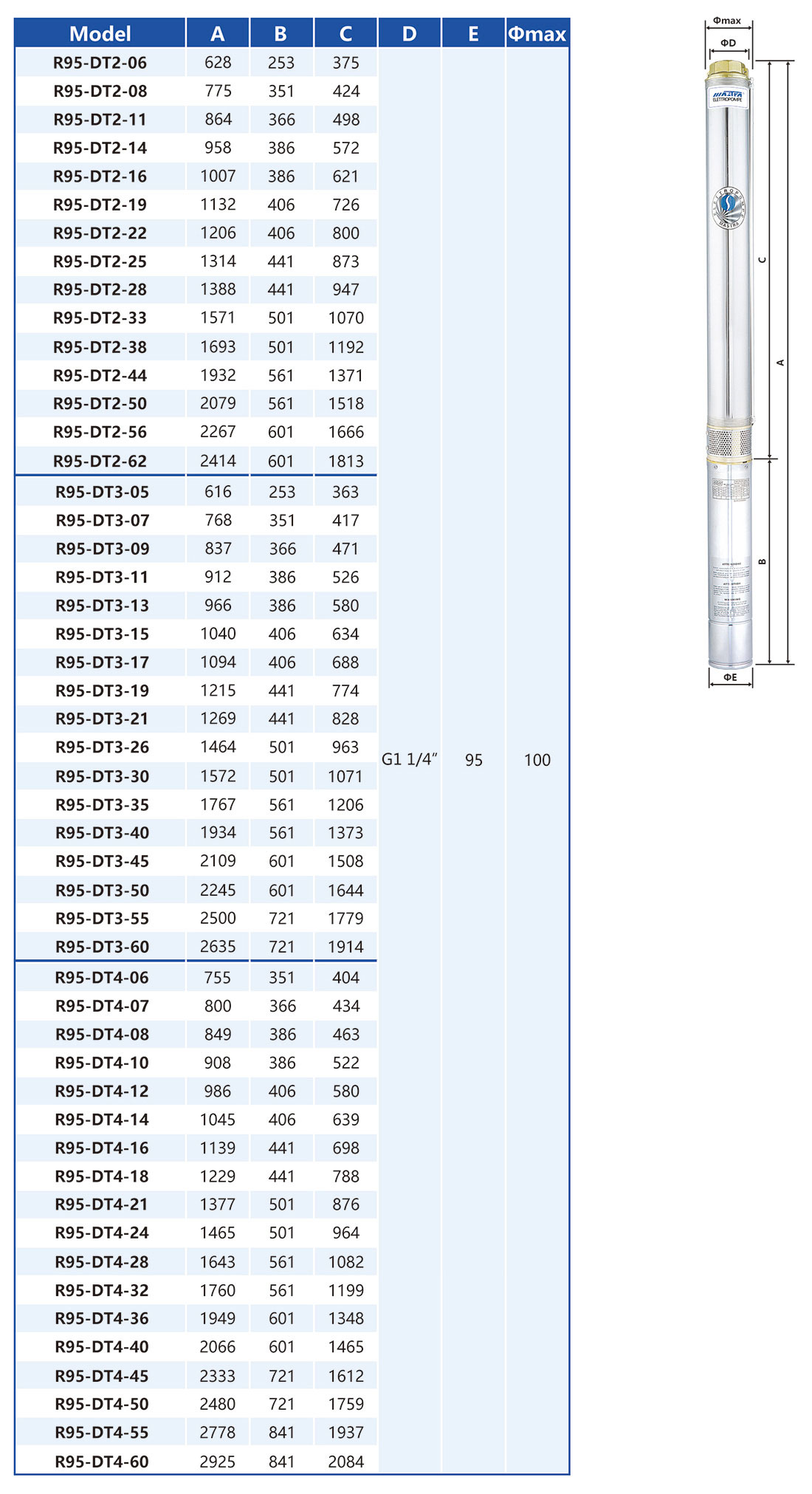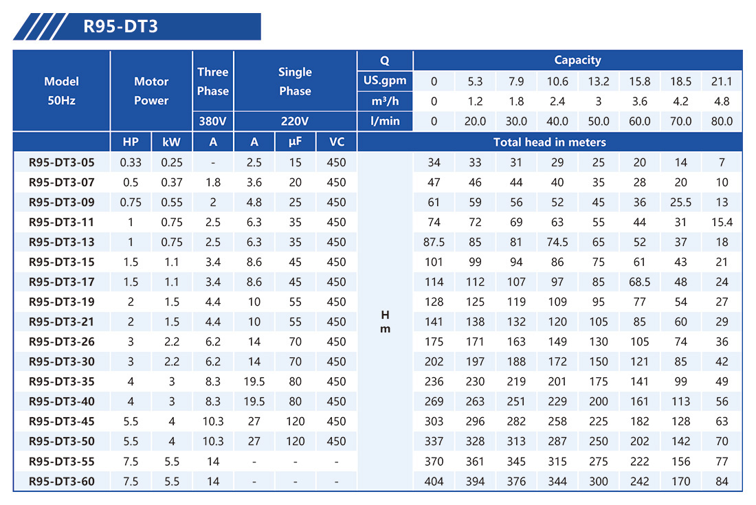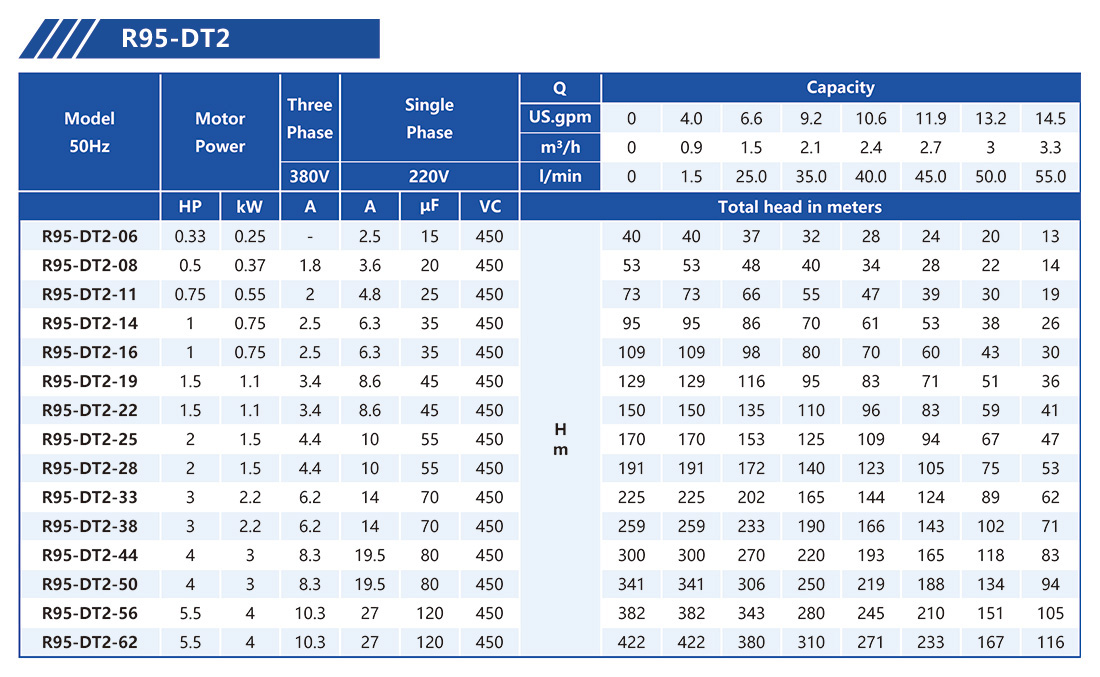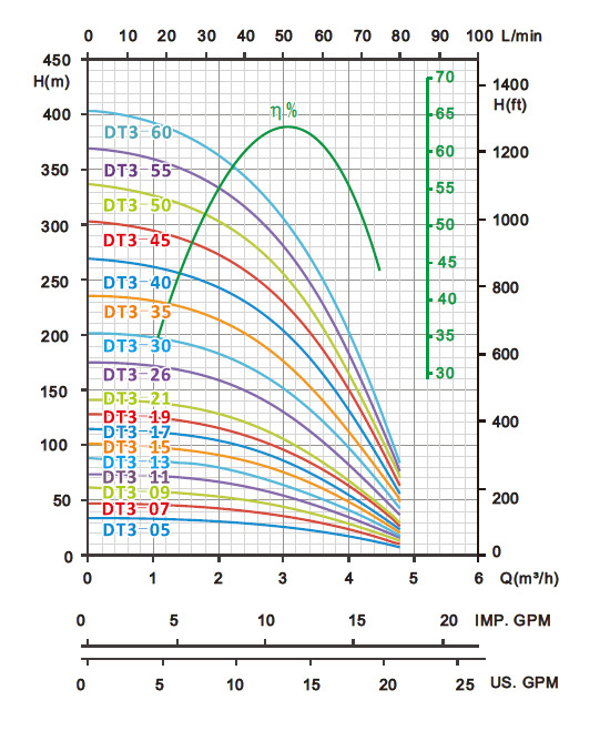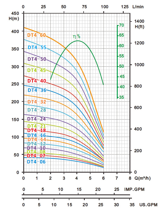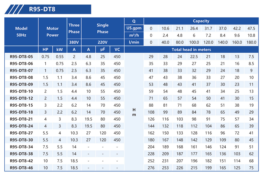 Electric submersible pumps are with radial or semi-axial imperllers.The impellers and the diffusers are in plastic material(noryl),whereas the bearings are in ceramic/rubber lubricated by the water circulation.Check valve is incorporated in the delivery body with threaded outlet.The coupling Pump-motor is according to NEMA regulations.