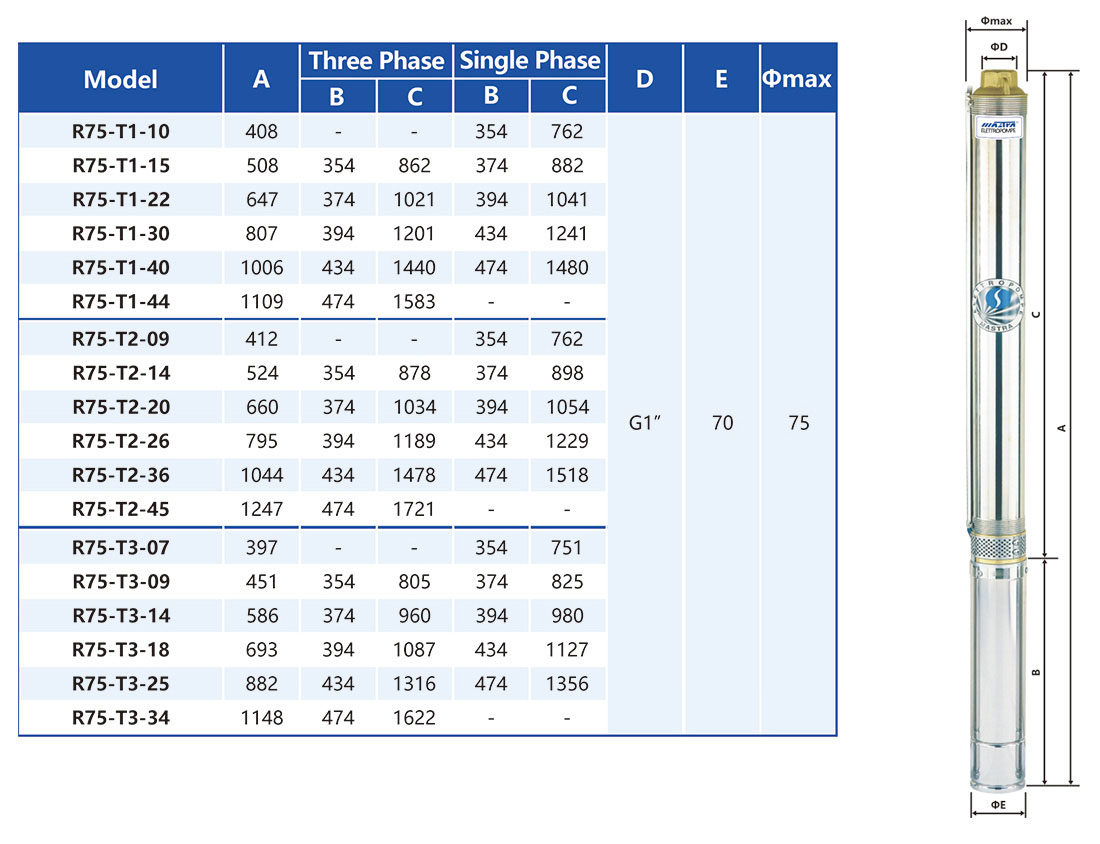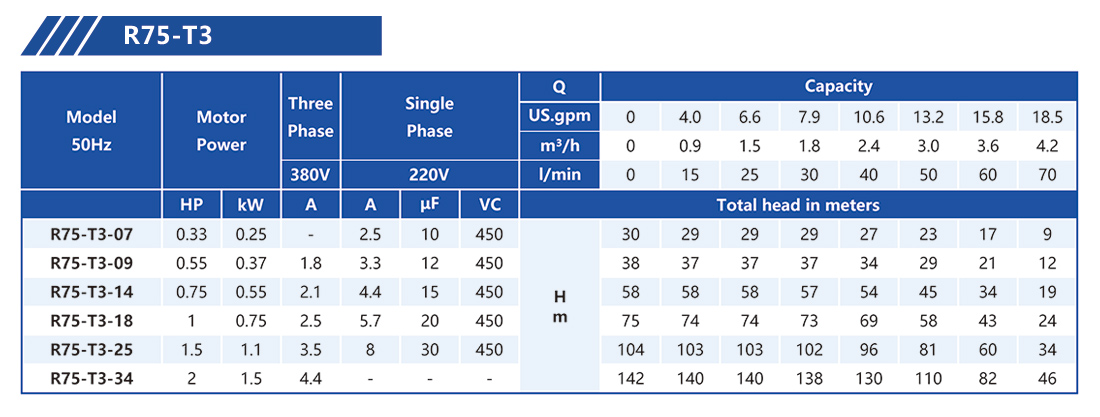 3" motor: about the technical characteristic, please see the catalogue of submersible motor