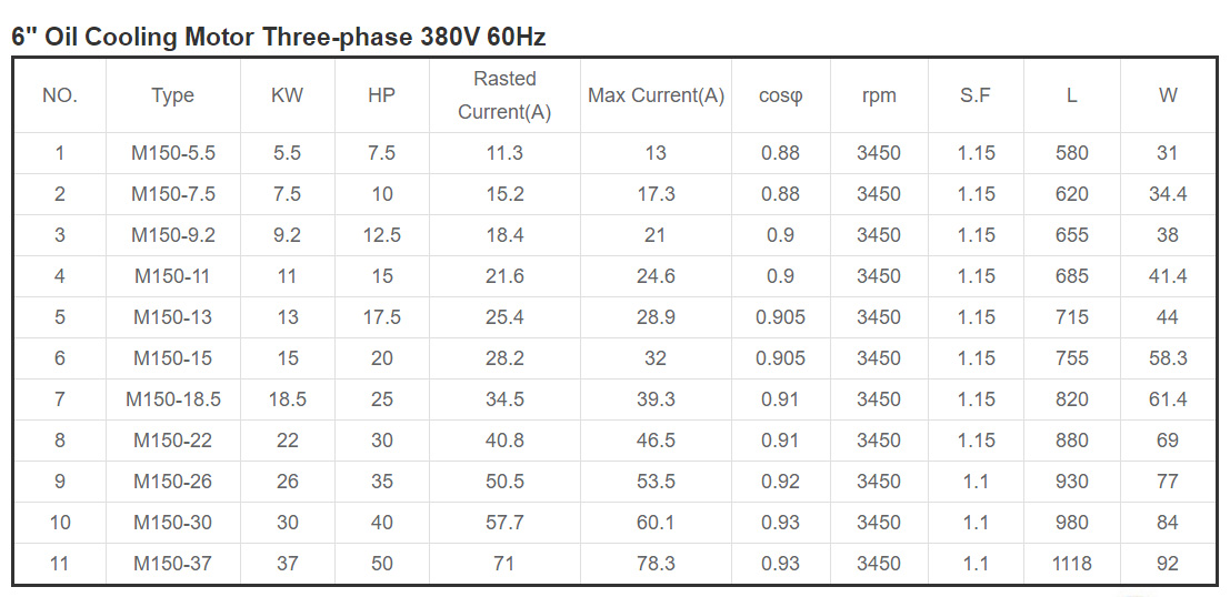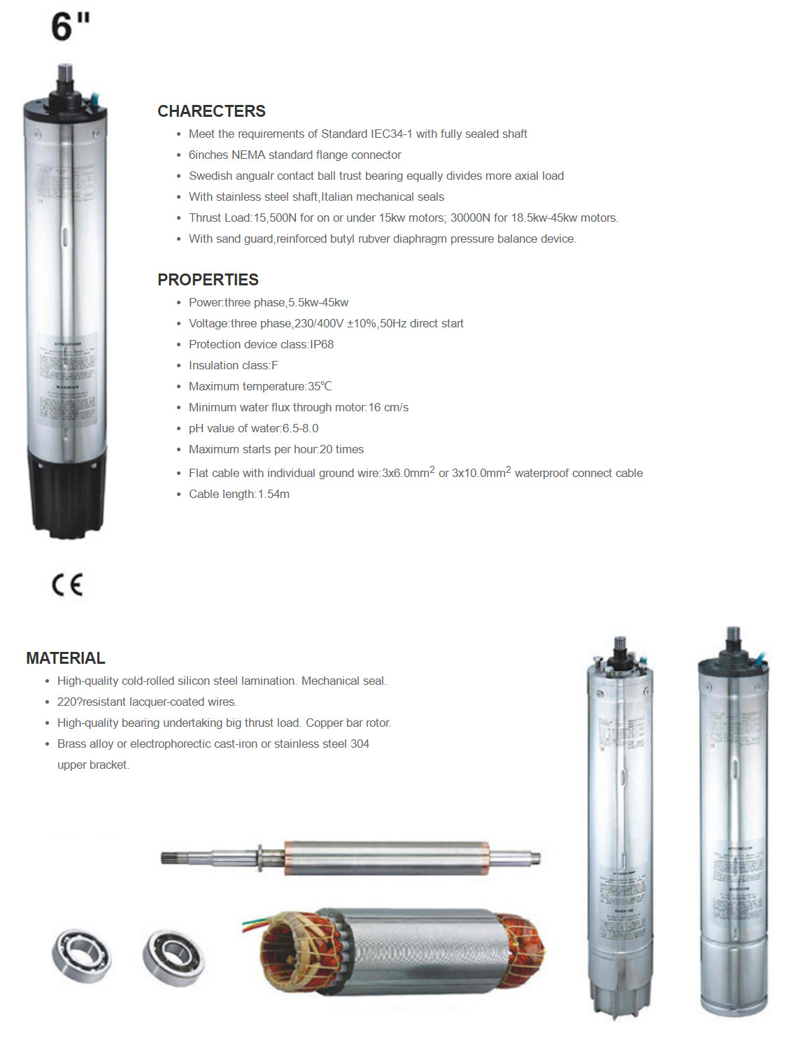 6" OIL COOLING SUBMERSIBLE MOTOR(60Hz)