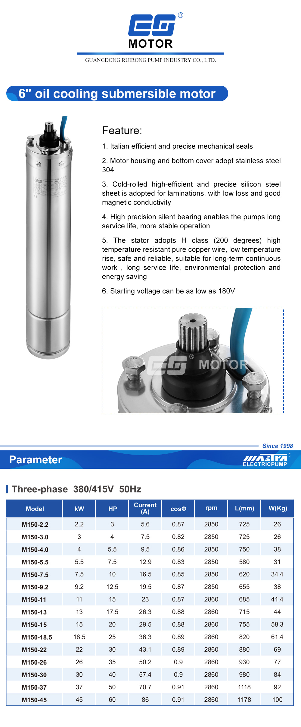 6" OIL COOLING SUBMERSIBLE MOTOR