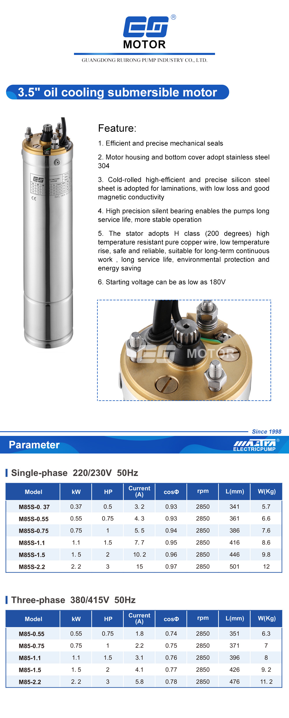 3.5" OIL COOLING SUBMERSIBLE MOTOR