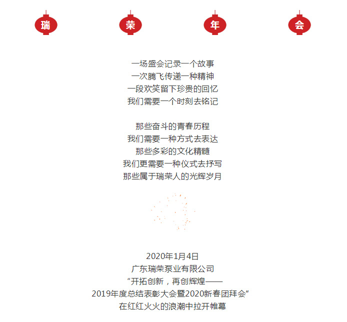 開拓創(chuàng)新,再創(chuàng)輝煌――瑞榮泵業(yè)2019年度總結(jié)表彰大會(huì)暨2020新春團(tuán)拜會(huì)圓滿舉行