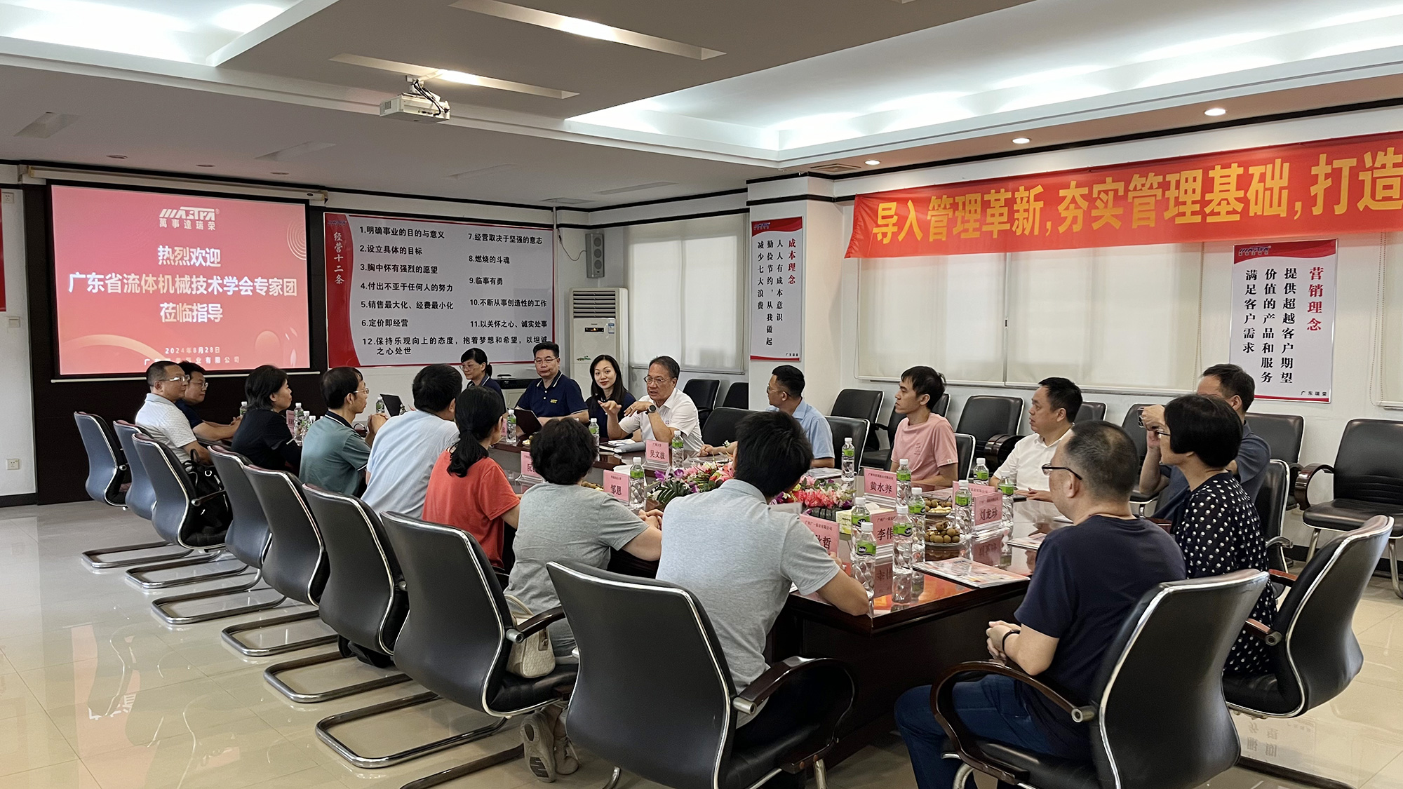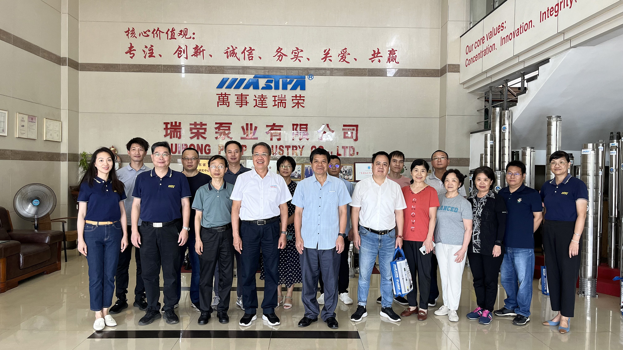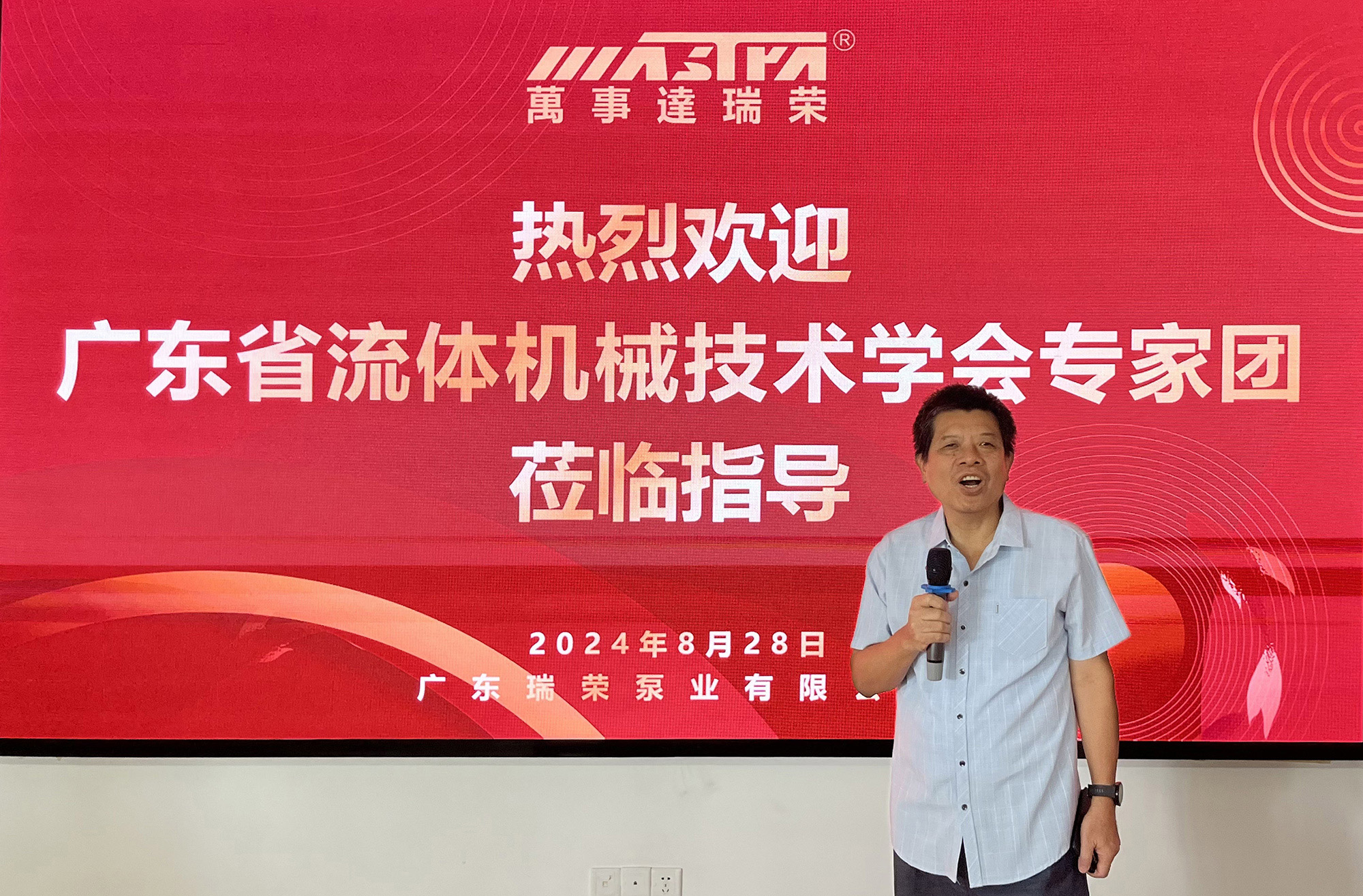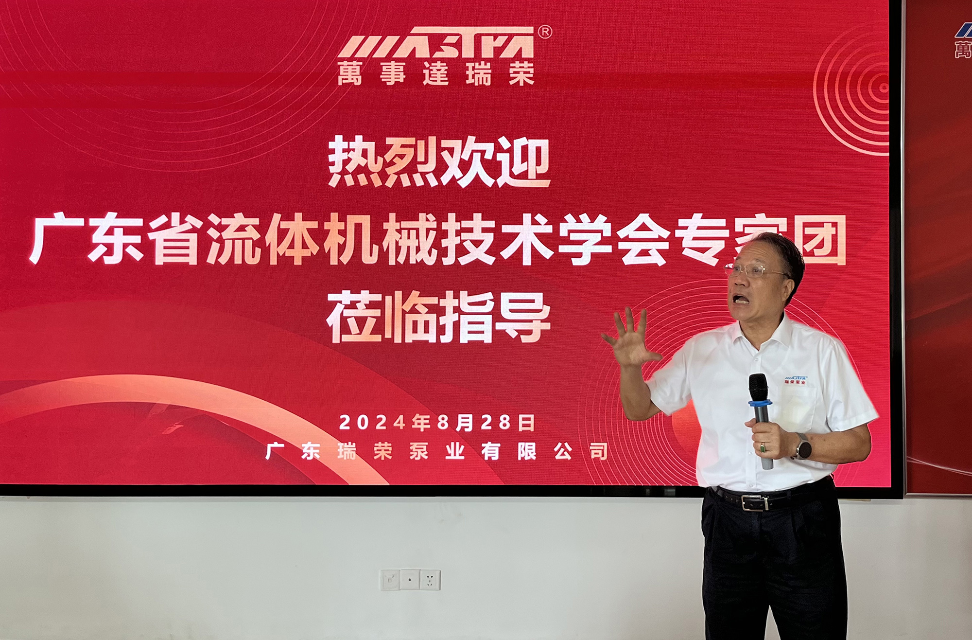 2024年8月28日,廣東省流體機(jī)械技術(shù)學(xué)會(huì)副理事長(zhǎng)兼秘書長(zhǎng)王立、副理事長(zhǎng)阮毅等領(lǐng)導(dǎo)帶領(lǐng)學(xué)會(huì)專家團(tuán)一行14人,訪問了位于江門市蓬江區(qū)杜阮鎮(zhèn)的廣東瑞榮泵業(yè)有限公司,受到公司董事長(zhǎng)、總經(jīng)理陳國(guó)榮、董事副總經(jīng)理陳穎欣、副總工程師高峻等高層領(lǐng)導(dǎo)的熱情接待。