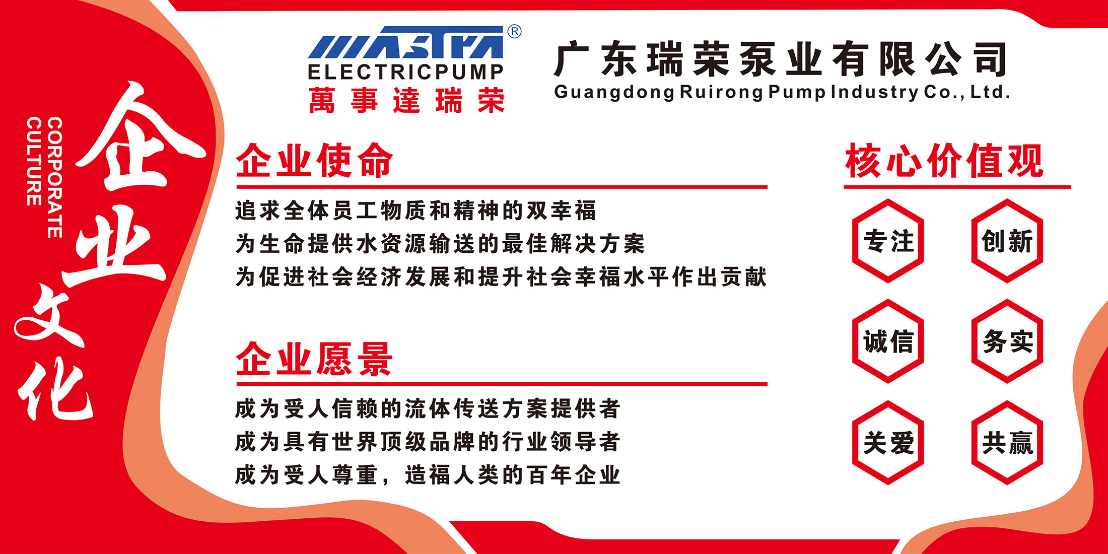 廣東瑞榮泵業(yè)在發(fā)展過程中,踐行優(yōu)良的企業(yè)文化,始終秉承“專注、創(chuàng)新、誠(chéng)信、務(wù)實(shí)、關(guān)愛、共贏”的核心價(jià)值觀,致力于為客戶提供高效、節(jié)能的產(chǎn)品和優(yōu)質(zhì)的服務(wù)。強(qiáng)調(diào)專注和專業(yè),通過持續(xù)的創(chuàng)新和研發(fā),不斷提升產(chǎn)品的質(zhì)量和性能,以滿足市場(chǎng)的需求。同時(shí),公司注重誠(chéng)信經(jīng)營(yíng),以誠(chéng)實(shí)守信為原則,與供應(yīng)商、客戶建立良好的合作關(guān)系。務(wù)實(shí)是公司的行事準(zhǔn)則,強(qiáng)調(diào)腳踏實(shí)地、注重實(shí)效的工作態(tài)度。關(guān)愛體現(xiàn)了公司對(duì)員工和社會(huì)的責(zé)任感,通過提供良好的工作環(huán)境和發(fā)展機(jī)會(huì),關(guān)心員工的成長(zhǎng)和生活。共贏則是公司的最終目標(biāo),希望通過與合作伙伴、客戶的共贏合作,實(shí)現(xiàn)企業(yè)的可持續(xù)發(fā)展。