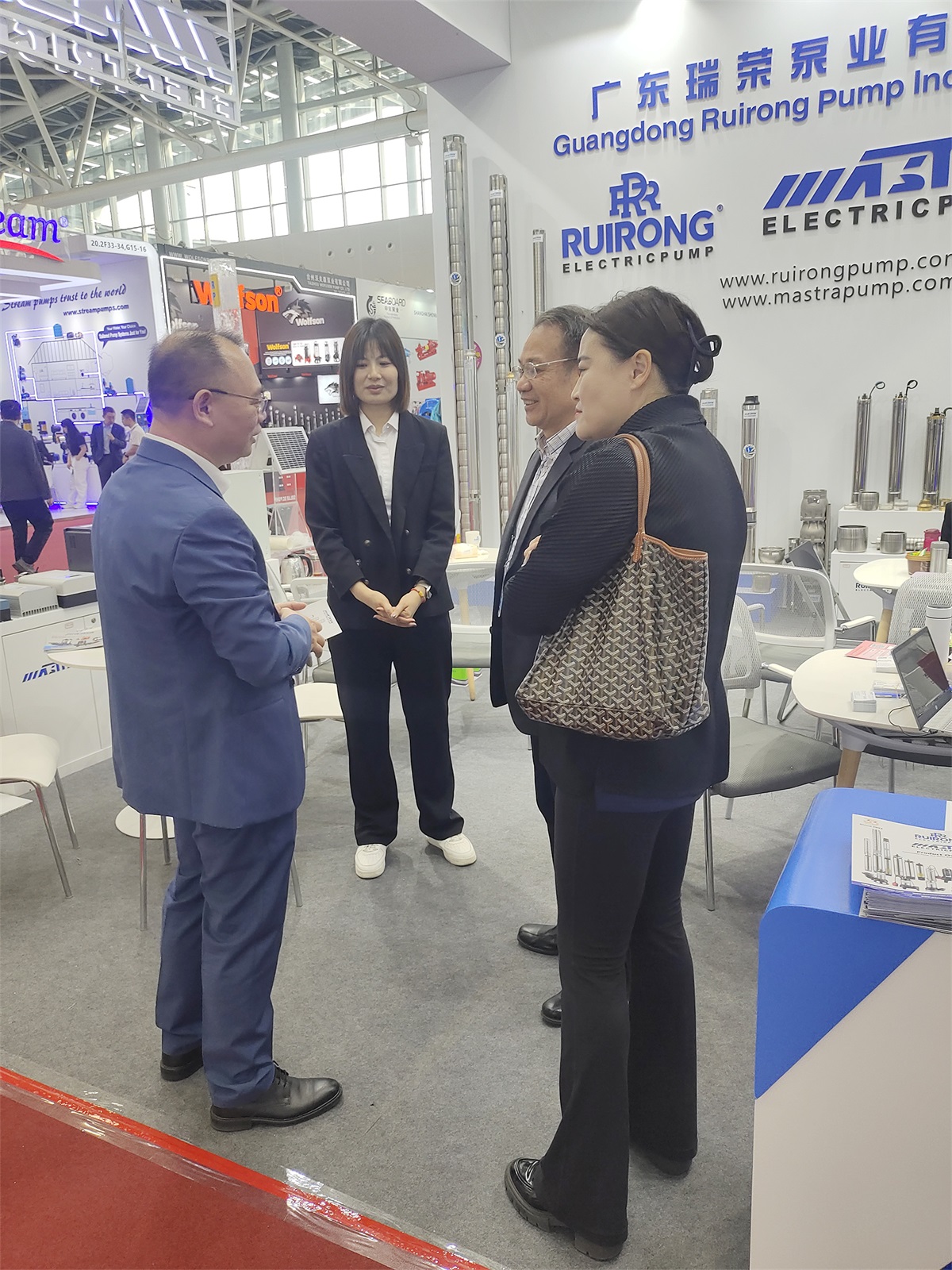 4月16日上午,第137屆廣交會現(xiàn)場熱鬧非凡,廣東瑞榮泵業(yè)展位(20.2HG35-36)上迎來了重要的上級領(lǐng)導(dǎo)――中國機電商會副會長白雪峰及潘經(jīng)理蒞臨我司展位指導(dǎo)。廣東瑞榮泵業(yè)陳國榮董事長率團隊予以熱情接待,并對白副會長及潘經(jīng)理的到來表達了誠摯感謝。白副會長一行對企業(yè)的關(guān)懷,給企業(yè)團隊帶來了極大的鼓舞與激勵。