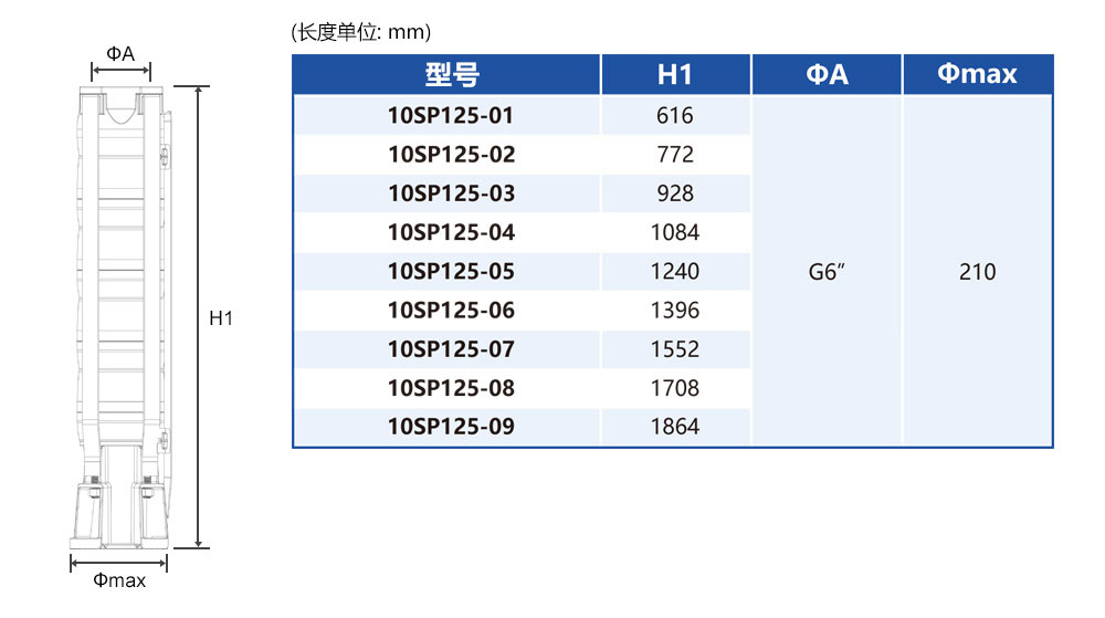 10SP125沖壓全不銹鋼井用潛水泵