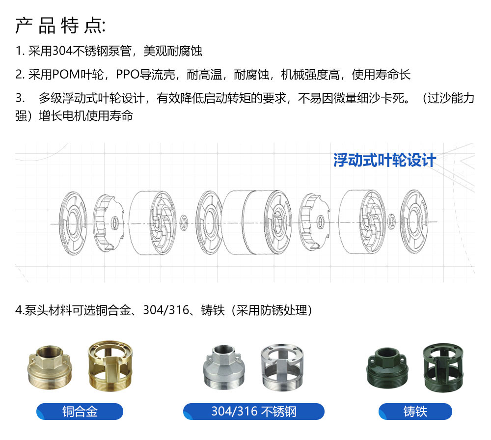 充分利用世界先進(jìn)國家的工藝技術(shù),例如美國和意大利。泵主體部分采用不銹鋼及銅合金制造,具有高效、節(jié)能、耐磨、防銹、美觀、安裝方便等特點(diǎn)。適用于家庭,民用和工業(yè)應(yīng)用,包括供水灌溉,沖洗系統(tǒng)和增壓。
