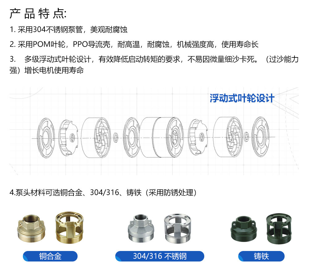充分利用世界先進(jìn)國家的工藝技術(shù),例如美國和意大利。泵主體部分采用不銹鋼及銅合金制造,具有高效、節(jié)能、耐磨、防銹、美觀、安裝方便等特點。適用于家庭,民用和工業(yè)應(yīng)用,包括供水灌溉,沖洗系統(tǒng)和增壓。