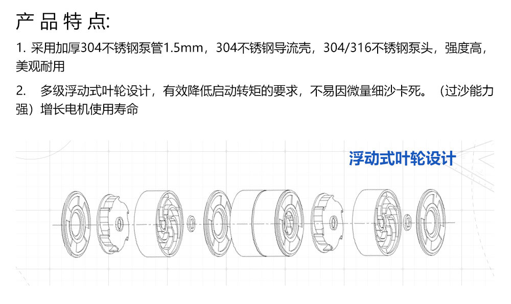 充分利用世界先進(jìn)國家的工藝技術(shù),例如美國和意大利。泵主體部分采用不銹鋼及銅合金制造,具有高效、節(jié)能、耐磨、防銹、美觀、安裝方便等特點(diǎn)。適用于家庭,民用和工業(yè)應(yīng)用,包括供水灌溉,沖洗系統(tǒng)和增壓。