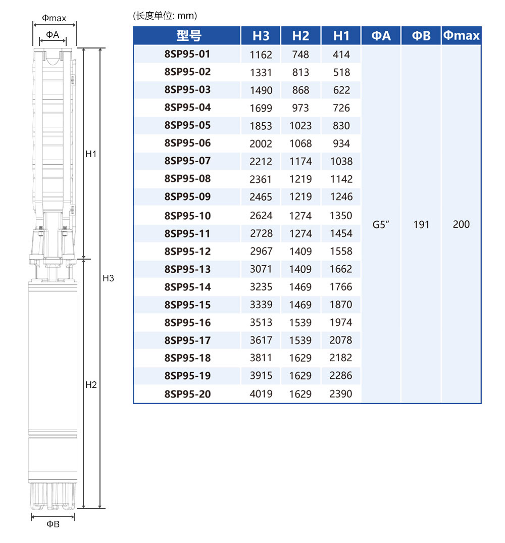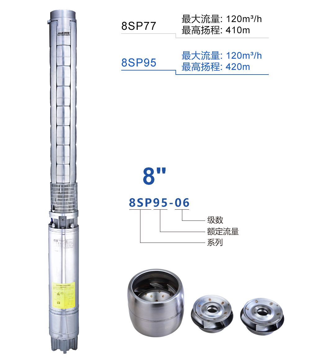 8SP95沖壓全不銹鋼井用潛水泵