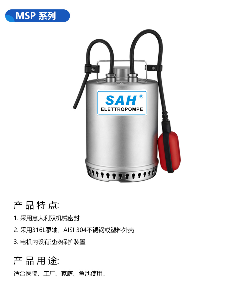 SAH 鯊魚牌 全不銹鋼家用潛水泵 小型養(yǎng)魚排水泵 污水泵