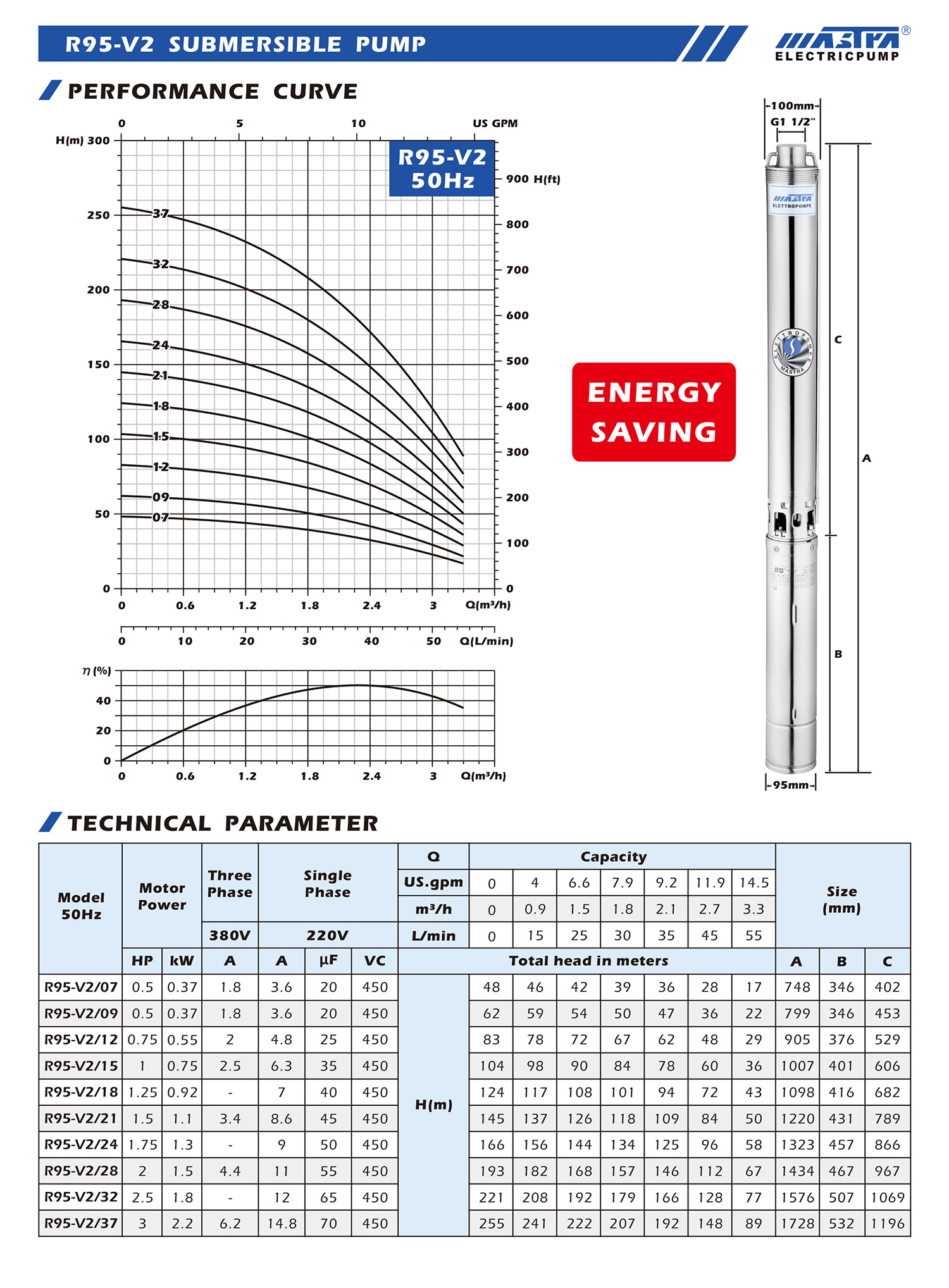 萬事達(dá)瑞榮新品R95-V2系列 4寸不銹鋼井用潛水泵