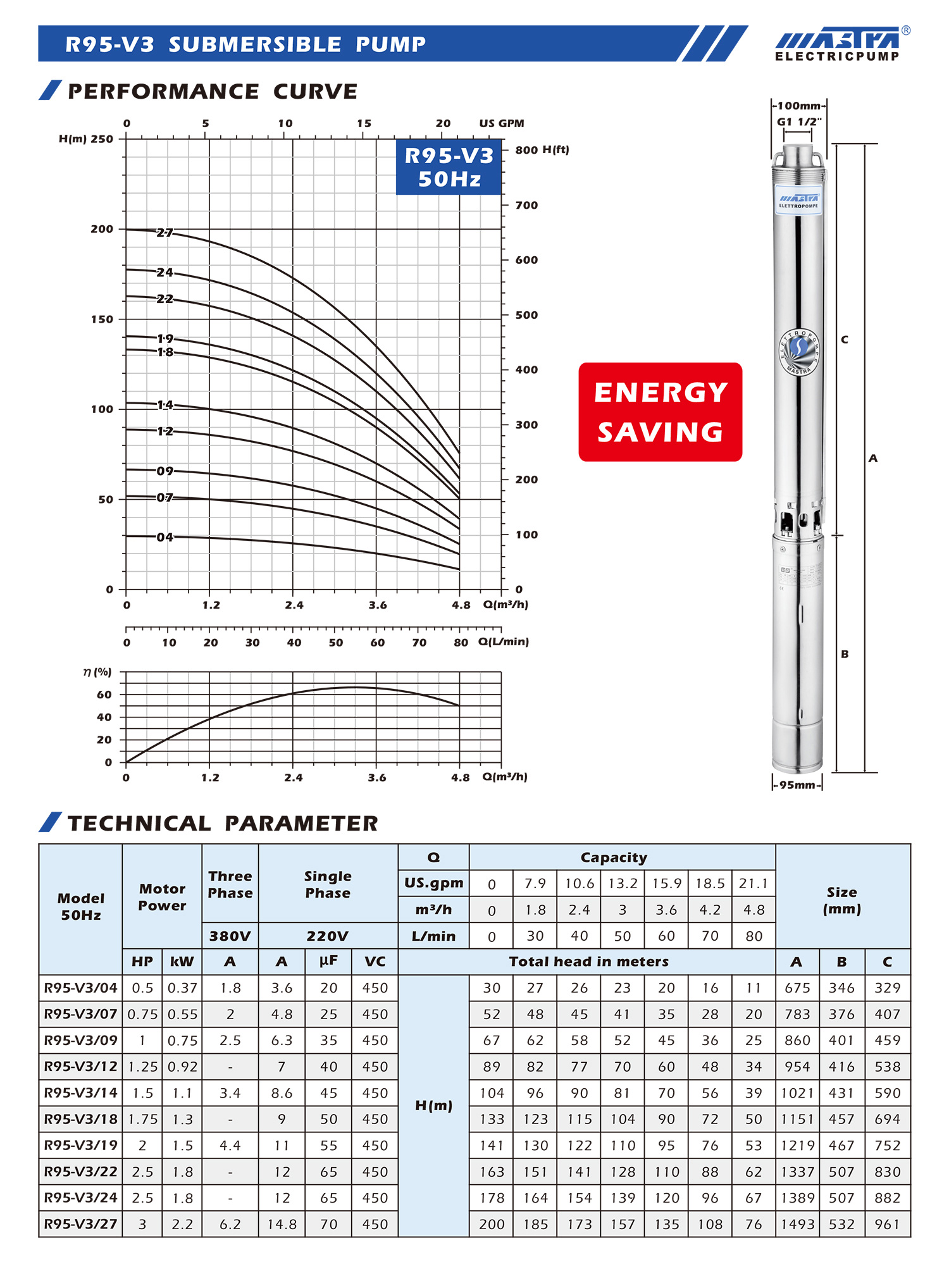 萬(wàn)事達(dá)瑞榮新品R95-V3系列 4寸不銹鋼井用潛水泵