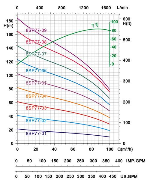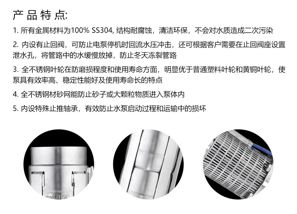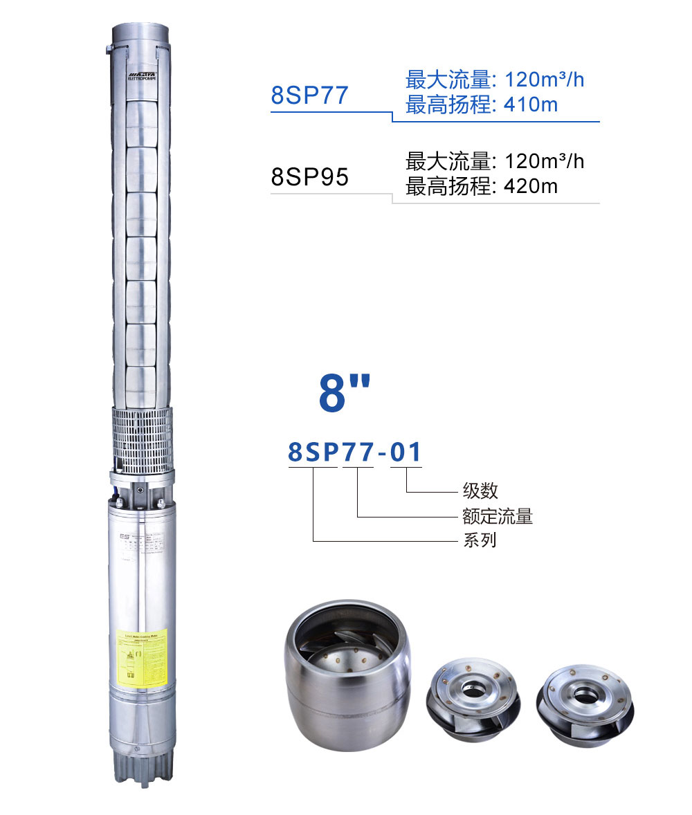 葉輪、導流殼、泵頭、泵座等金屬部件均采用耐磨防腐的304不銹鋼, 并采用先進的沖壓工藝制成。軸座膠軸承采用耐磨橡膠材料。聯(lián)軸器與電機的連接方式符合NEMA標準。我們的葉輪和導流殼是按照高效率、高可靠性和長壽命的要求設(shè)計和制造的。